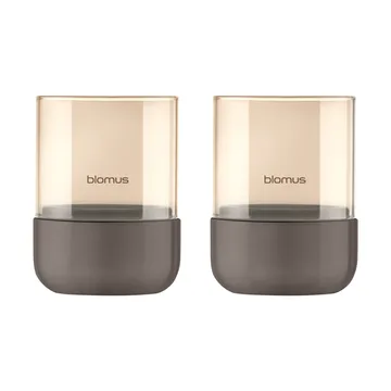 Candela votiva Calma Ø 7 cm, confezione da 2 di blomus è un set di due piccole lanterne da tavolo con una parte cilindrica in vetro su una base in cemento. L'effetto specchio all'interno del vetro moltiplica la fiamma in modo suggestivo. Disponi Calma sul tavolo o sul davanzale per creare un'atmosfera calda e accogliente.