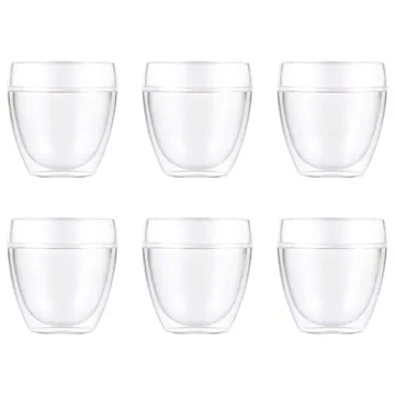 Bicchiere a doppia parete Pavina Outdoor confezione da 6 di Bodum è un bicchiere trasparente adatto sia per bevande fredde che calde. Il bicchiere è appositamente progettato per essere utilizzato all'aperto e si adatta bene sia per l'uso quotidiano che per le feste. Il bicchiere a doppia parete in plastica fa sì che sia comodo da tenere in mano e protegga le tue mani dalle bevande calde.