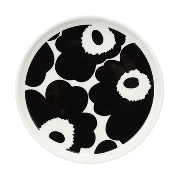 Piatto Unikko Ø13,5 cm di Marimekko è un piccolo e affascinante sottopiatto della amata collezione Unikko, disegnata da Kristina Isola e Sami Ruotsalainen. Il piatto, in gres bianco, presenta il caratteristico motivo floreale con pigmenti metallici dorati che donano un caldo e festoso aspetto alla tavola. Perfetto per antipasti, dessert o come vassoio per piccole prelibatezze. A causa dei pigmenti metallici si consiglia il lavaggio a mano per preservare la brillantezza e la durata del motivo.