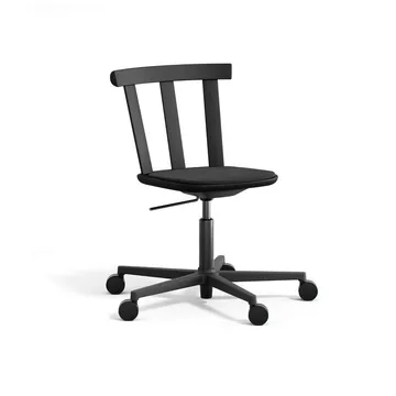 Sedia Alt in betulla girevole con sedile rivestito da Stolab è progettata da Form Us With Love. Questa sedia unica combina legno massiccio con un sedile rivestito ed è dotata di una base girevole con ruote che permette un facile spostamento. L'altezza regolabile e la funzione di inclinazione offrono comfort aggiuntivo, rendendola ideale per lo smart working domestico. Lo schienale generoso e il design adattabile migliorano sia il comfort di seduta che l'esperienza estetica.