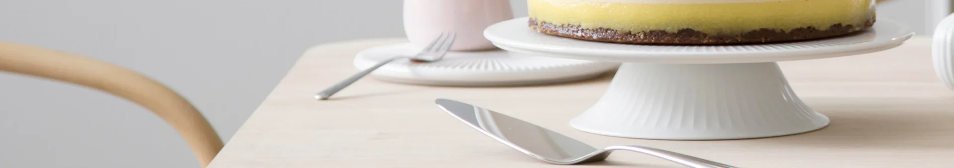 Qui puoi trovare alzate per torte che fanno parte di famosi set e collezioni per la tavola, come l'alzata per dolci Kastehelmi, il piatto da torta Hammershøi e il piatto Rustic.